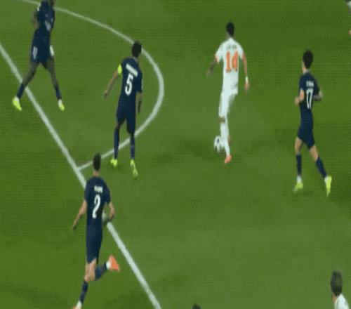 第44分钟,格纳布里脚后跟妙传,基米希插上的射门差之毫厘,巴黎门前风声鹤唳。